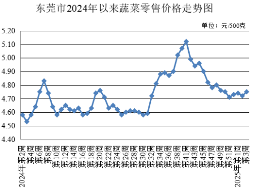 第3周,监测的30种蔬菜农贸市场零售均价为每500克4.75元,较上周上升0.64%。其中,叶菜类农贸市场零售均价为每500克4.85元,较上周上升0.21%;非叶菜类农贸市场零售均价为每500克4.67元,较上周上升0.86%。