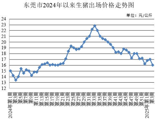第3周,生猪出场价格为每公斤16元,较上周下降5.88%。总肉批发均价为每500克12.65元,较上周下降4.89%。