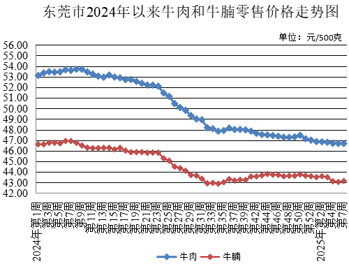 第7周,牛肉农贸市场零售均价为每500克46.68元,与上周持平。牛腩农贸市场零售均价为每500克43.14元,较上周上升0.21%。鸡肉农贸市场零售均价为每500克17.09元,较上周下降0.52%。