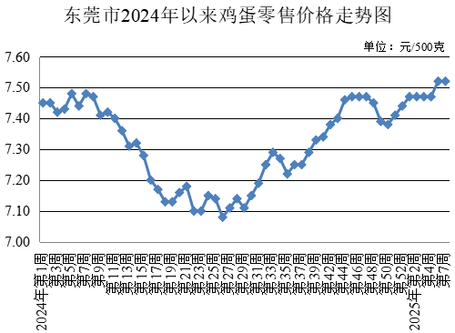 第7周,监测的鸡蛋农贸市场零售均价为每500克7.52元,与上周持平。