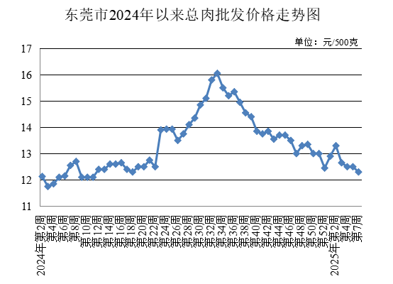 第7周,监测的生猪出场价格为每公斤15.40元,较上周下降9.41%。总肉批发均价为每500克12.30元,较上周下降1.60%。