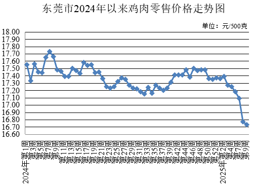 第9周,所监测的牛肉农贸市场零售均价为每500克46.59元,较上周下降0.19%。牛腩农贸市场零售均价为每500克43.09元,较上周下降0.12%。鸡肉农贸市场零售均价为每500克16.73元,较上周下降0.24%。
