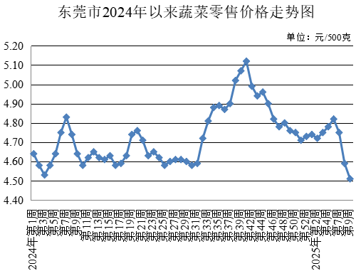 第9周,所监测的30种蔬菜农贸市场零售均价为每500克4.51元,较上周下降1.74%。其中,13种叶菜类农贸市场零售均价为每500克4.51元,较上周下降2.17%;17种非叶菜类农贸市场零售均价为每500克4.51元,较上周下降1.53%。