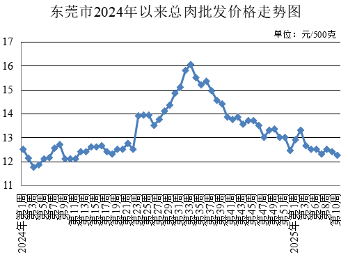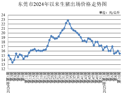 第10周,生猪出场价格为每公斤15.40元,较上周下降3.75%。总肉批发均价为每500克12.25元,较上周下降1.21%。